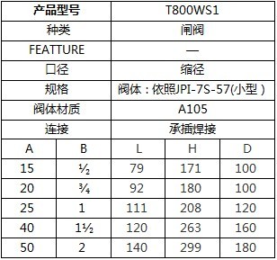 日立锻钢承插焊闸阀 T800WS1